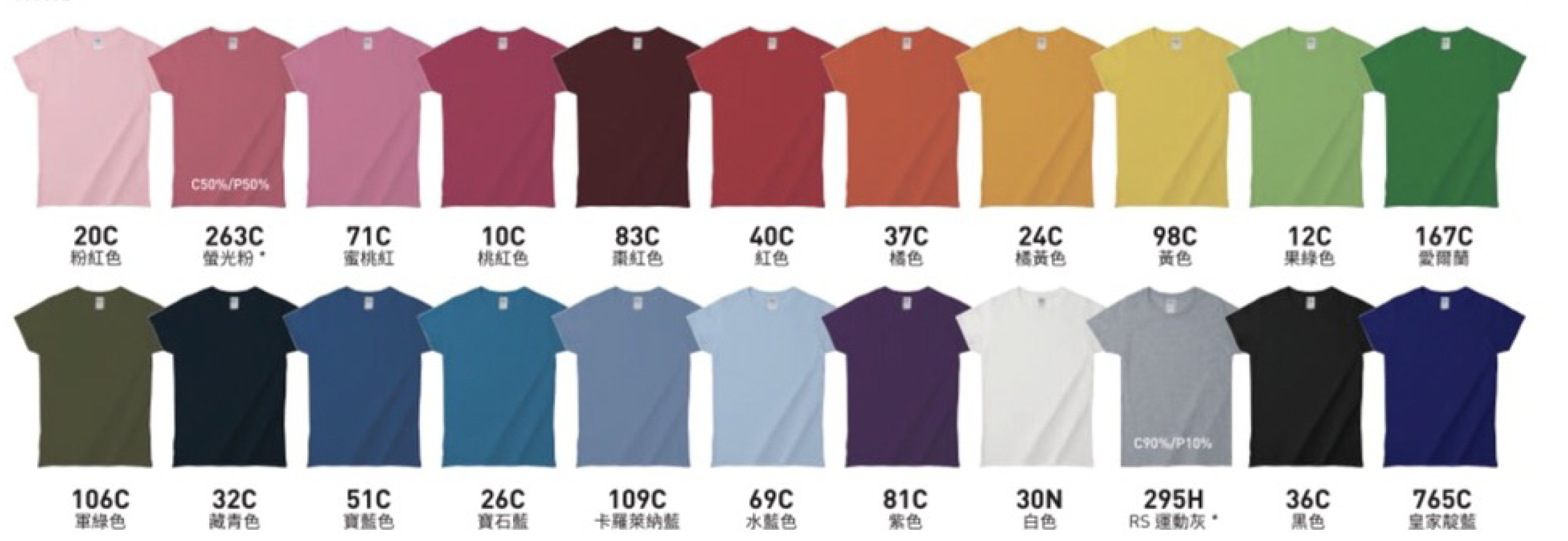 100%純美國棉柔軟纖維 (柔軟舒適) - 石楠綠、螢光粉、石楠寶楠、石楠紅、石楠紫、石楠灰:50%Cotton+50% polyester