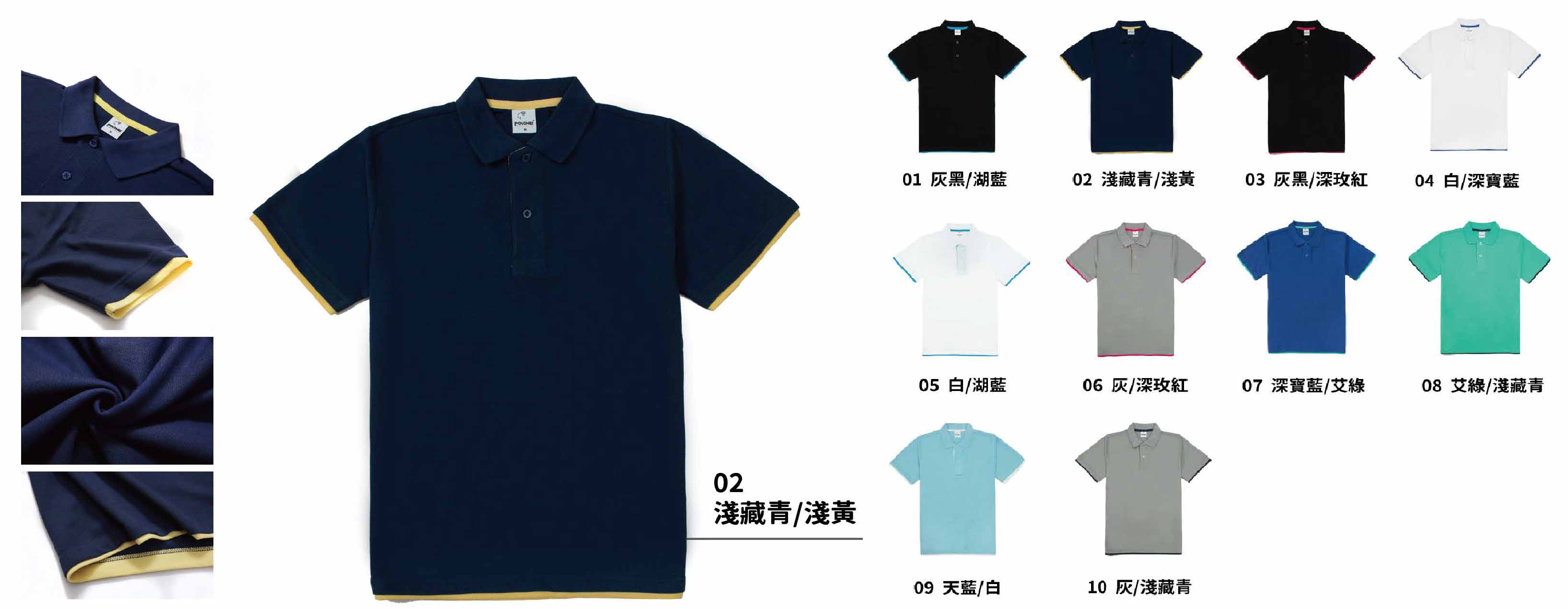 - 特色兩顆同色扣子,雙色領、雙色袖側邊無開岔、雙針下擺摺邊
