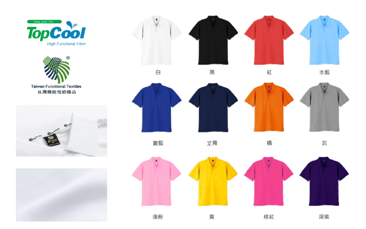 Top Cool ®高機能性聚酯纖維十字異斷面專利纖維,使汗水更易蒸發不易勾紗、實用耐穿、易洗速乾