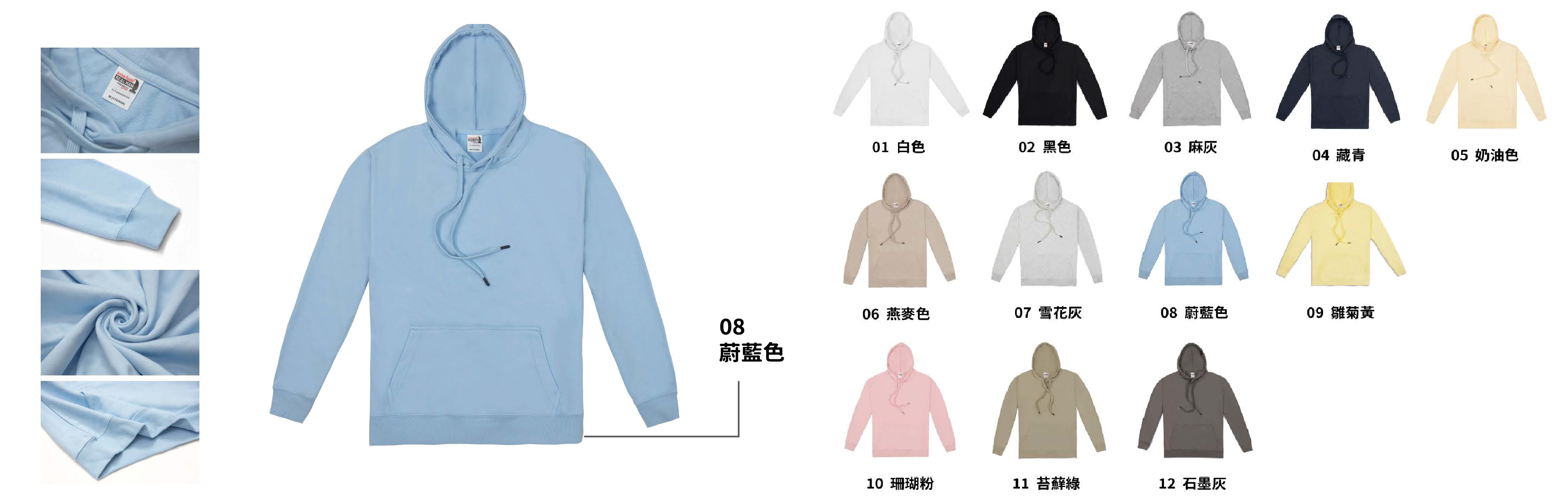 - 款式重磅落肩無刷毛連帽上衣,中性款