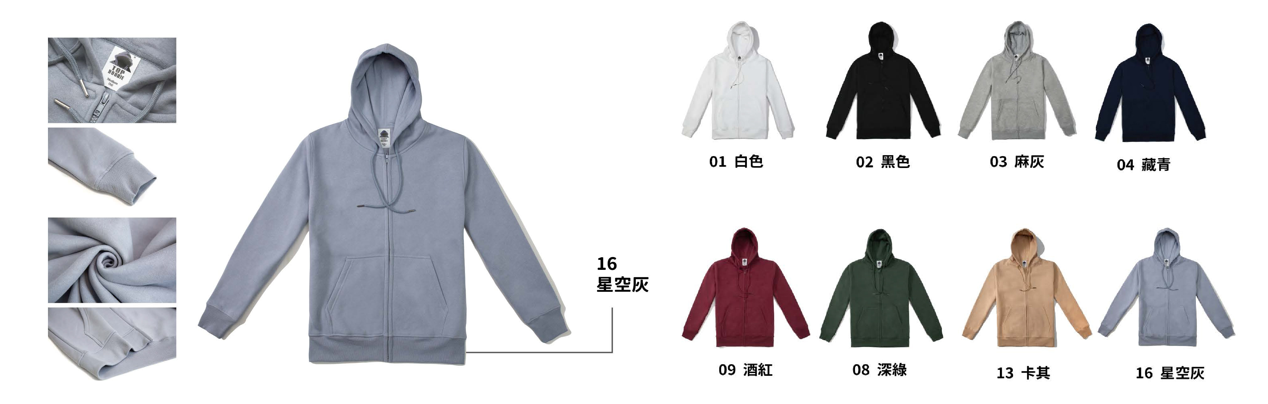 - 材質 48%Cotton、41% polyester、11%縲縈預縮刷毛布料,9.7 oz.