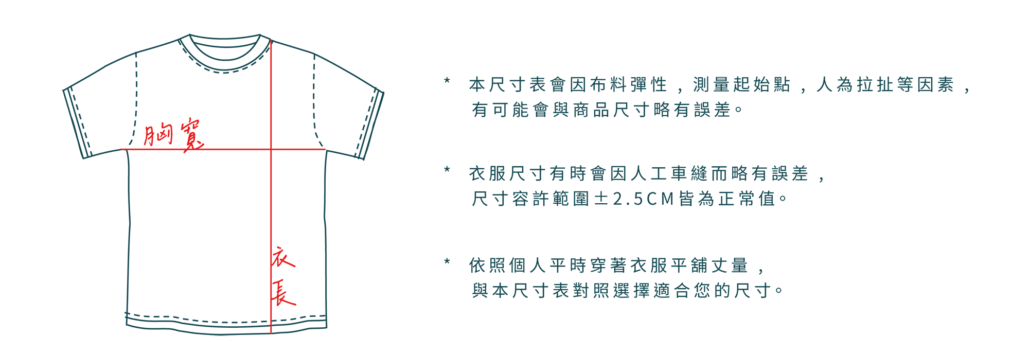 款式中性款,男女皆宜 規格40 Colors x 10 Size 材質100% Polyester,碼重230公克 特色吸濕排汗、透氣速乾 超涼手感輕盈舒適 可撕式環保領標 洗滌方式 翻面手洗最佳,深淺色請分開洗滌 機洗請翻面放入細網洗衣袋中弱速水洗,以保持商品型態 洗滌時,水溫請低於30℃;請使用中性洗劑;請勿浸泡,不可濕放,以免衣物染色 請勿使用漂白劑、螢光增白劑及衣物柔軟劑,以免破壞布料 請弱速輕脫水,不可烘乾;清洗後請立即平放陰乾即可 尺寸參考 左右尚有資訊 尺寸(CM) #8 #10 XS S M L XL 2XL 3XL 5XL 胸寬 37 40 43 46 50 53 56 60 64 72 衣長 50 54 60 64 68 70 72 76 80 84